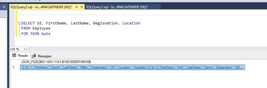 Thus the increased popularity of JSON in modern web applications, made the database team to expose some of their data to web application in a JSON format. MS SQL provided two options for converting data into JSON that is by using FOR JSON AUTO, and FOR JSON PATH.